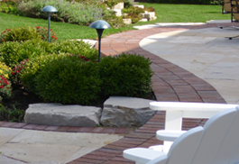 Enjoy your outdoor environment with an elegant landscape that includes inviting garden spaces, spectacular floral points, inviting meandering pathways and stone walkways. Perhaps a fire pit, pool deck or stone patio, enhanced by a rainbow of plant material to provide seasonal colors and textures throughout the year. We will help you choose from a wide variety of hardy local grown plant materials as well as hardscape materials, such as brick and natural stone. We will also assist you in navigating the field of varied colors and styles. Our goal is to create a unique landscape design, with the help of your vision, that will complement your home, lifestyle,and budget. Our expert award-winning team will create your new landscape, path, walkway, patio, fire pit, pool area in a pleasing and lasting fashion, paying close attention to the detailed finishing touches that will set your landscape apart from others. Our craftsmen ensure that your new environment will provide a lifetime of service and enjoyment.